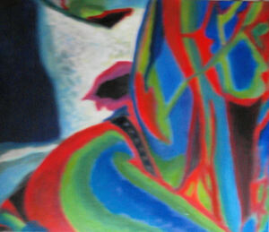 Dit semi-abstracte schilderij is een dynamische verkenning van vorm, met in elkaar grijpende en gelaagde cirkels in verschillende maten en kleuren. De compositie combineert zachte, vloeiende rondingen met scherpere randen, waardoor beweging en diepte ontstaat binnen de abstracte vormen. De overlappende cirkels roepen een gevoel van harmonie en onderlinge verbondenheid op en nodigen kijkers uit om hun eigen verbindingen te interpreteren en binnen het stuk te stromen.